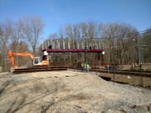 The Canopy bridge over the trolley tracks near Mattapan Station was installed on Saturday, April 16. The Dorchester Reporter wrote about it.